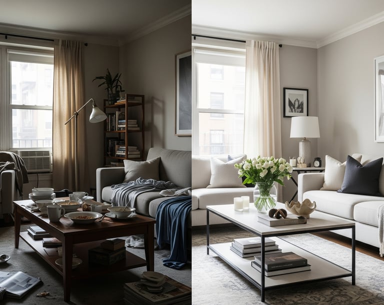 Lavado de cara: Es la inversión inteligente. Consiste en despejar y ordenar, realizar una limpieza profunda y hacer reparaciones menores (pintar, arreglar un grifo, etc.). Prepara el piso para que el comprador se imagine viviendo en él.